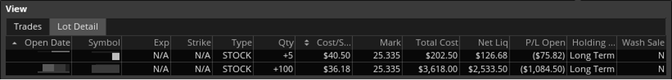 A tax lot is a record of each BUY order in thinkorswim®, including data used to calculate tax outcomes. Tax lots help traders with tax strategies by identifying differences between shares in the same position.
