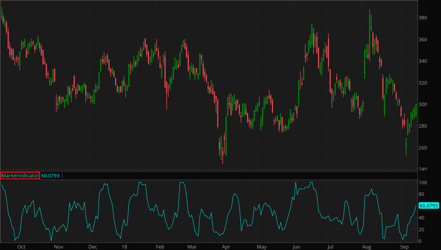 The Marker Indicator is a study which is intended to predict trend reversals based on changes of High and Low prices. It finds two differences: between the current High price and its previous value and between previous Low and its current value. If the difference is negative, zero is taken instead.