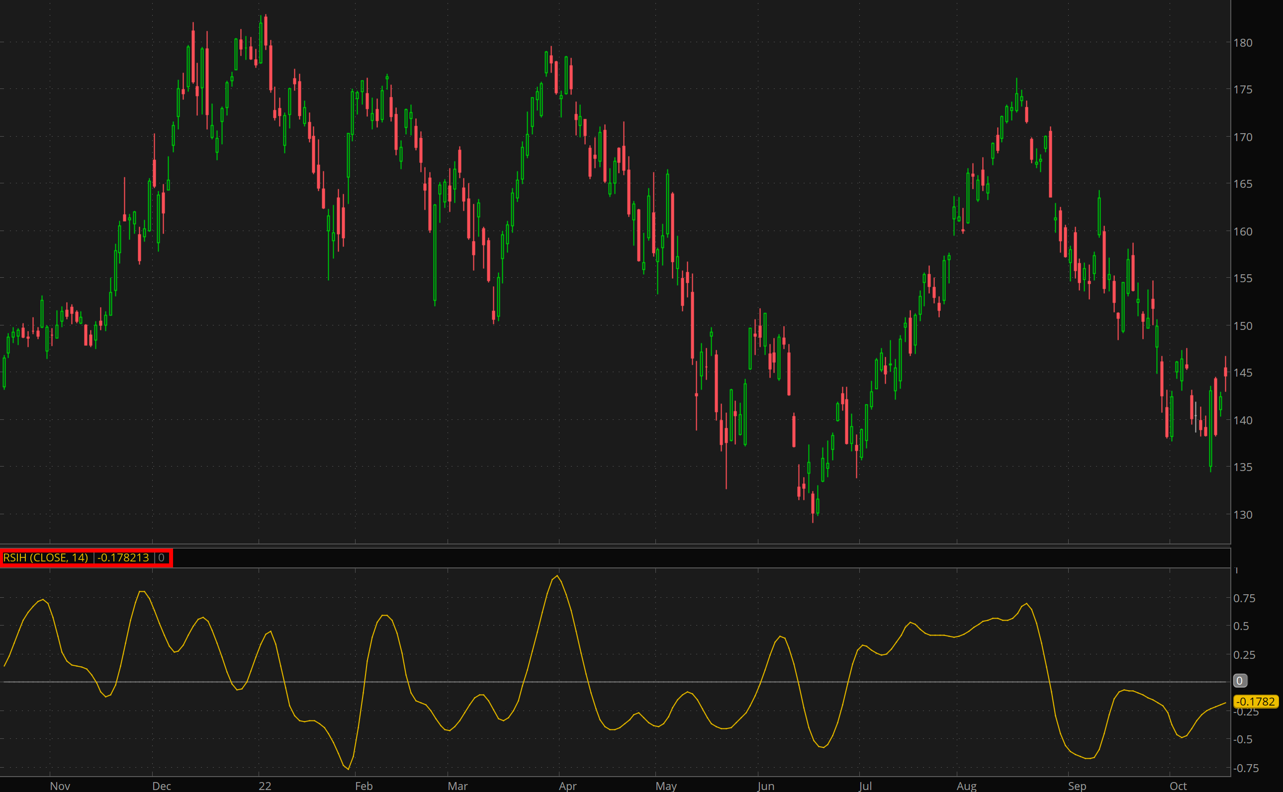 The Relative Strength Index Hann (RSIH) is a transformation of the RSI: