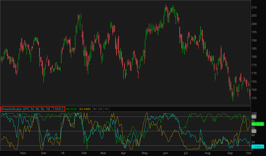 The Stress Indicator is a study designed by Perry Kaufman in order to offer a better risk protection during times of market stress. Designed for pairing stocks with indexes, it combines fundamentally different strategies.