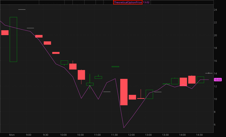 This study plots values of the OptionPrice function for the chosen option symbol.