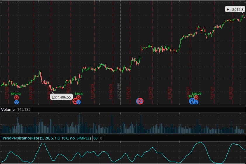 Trend Persistence Rate is a technical indicator designed by Richard Poster, PhD. As its name implies, this technical indicator attempts at measuring the strength of a trend. While many other indicators assess the trend strength based on price changes, Trend Persistence Rate does so by taking into account trend duration.