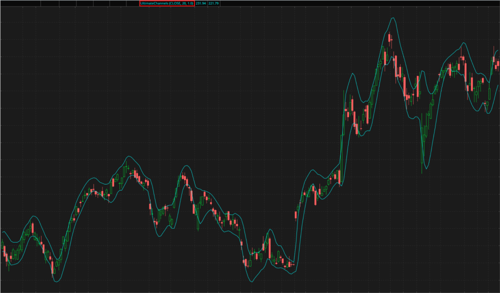 UltimateChannels is a technical indicator designed to evaluate trend direction and price volatility. Its calculation method is similar to that of KeltnerChannels; however, it uses UltimateSmootherFilter to smooth both the specified price and Average True Range, in order to calculate the values for the upper and lower channels.